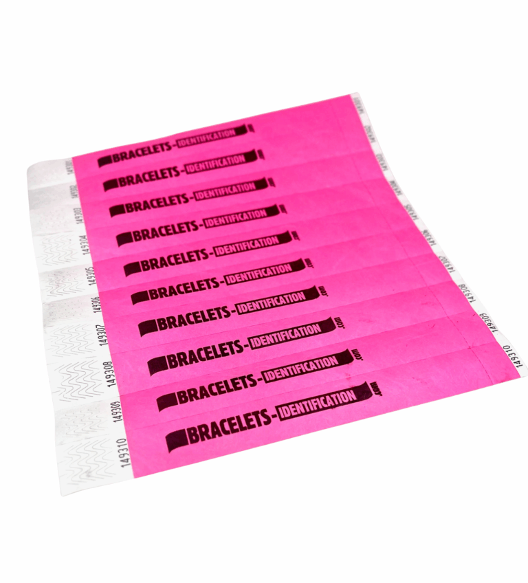 - Bracelet d’identification en TYVEK, qui est une matière indéchirable résistante à l’eau