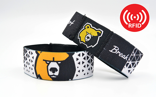 Bracelets en tissu élastique avec puce RFID intégrée, haut de gamme, 100% polyester.